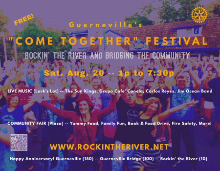 Guerneville’s “Come Together” Festival – Rockin' the River and Bridging the Community – Saturday, August 20th